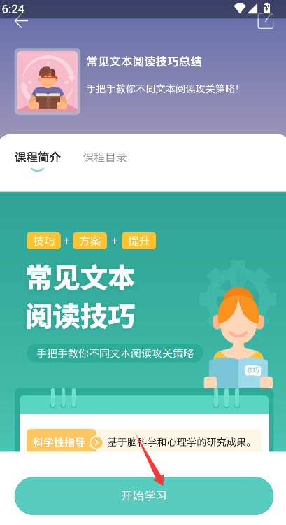 3、点击页面中央或底部醒目的“开始学习”按钮,系统将正式加载内容并跳转至课程学习界面。