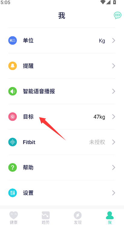 2、浏览并找到明确标有“目标”字样的功能入口,点击后即可跳转至专门的目标体重设定页面。