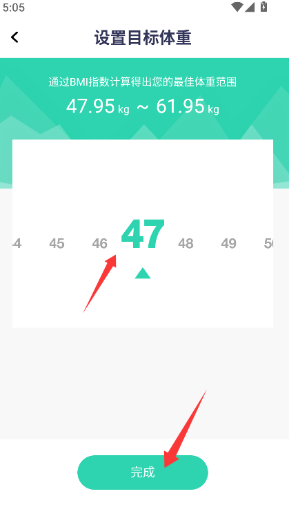 3、选定理想目标体重后,点击页面下方的“完成”按钮以确认并保存此次修改。