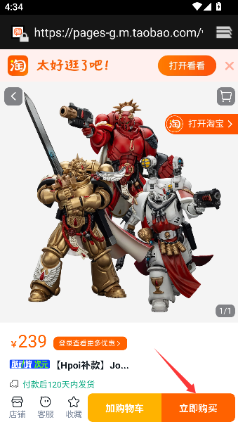 3、进入该手办的商品详情页,确认规格与价格后,点击页面上的“立即购买”按钮进行结算。