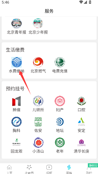 2、页面内提供水费、北京燃气费等民生缴费项目,直接选择相应选项即可办理。