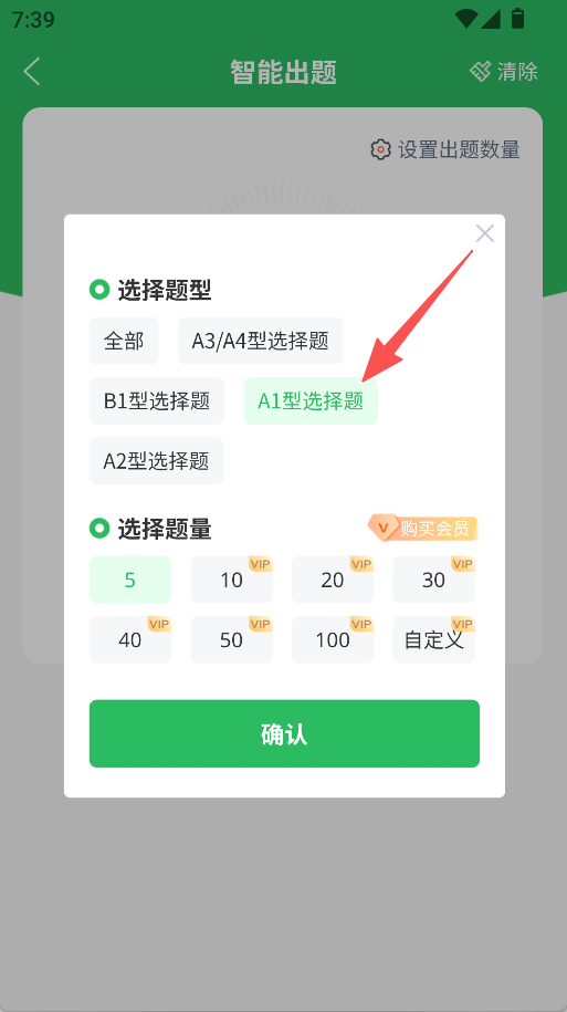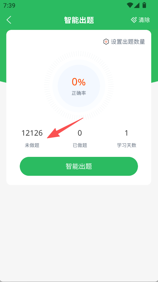 1、具备智能出题功能,支持选择不同题型、设置题量,实现个性化刷题,助力考生针对性提升。