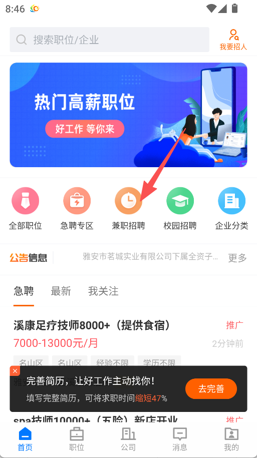 2、名企资源丰富,与本地知名企业合作设立名企专区,涵盖多行业优质岗位,提供高端就业机会。