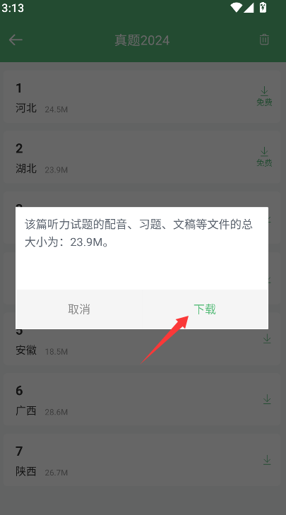 3、在真题详情操作界面,点击明确的“下载”按钮,,实现后续的离线学习与反复练习。