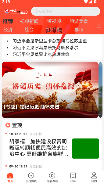 1、手指一点首页顶部的"旅游美食",像打开一个香气扑鼻的宝藏库,馋虫立刻被勾起来。