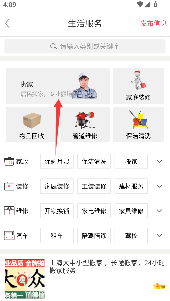2、接着在生活服务大本营里,精准戳中“搬家”这个图标,瞬间解锁一屏幕专业的搬家公司,任君挑肥拣瘦。