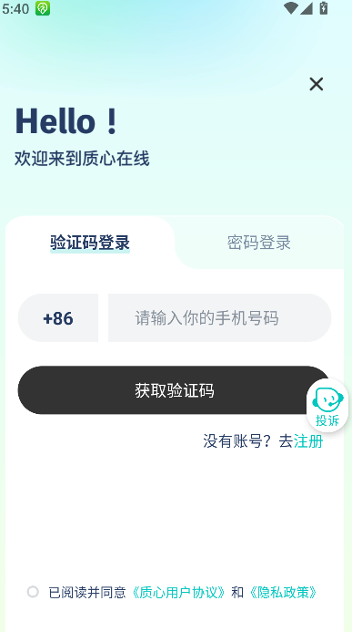 3、选择"去注册"选项,点击后即可进入填写手机号、获取验证码等后续注册环节。