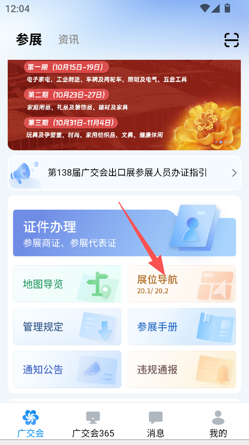 1、点击“展位导航”,查看展区位置。