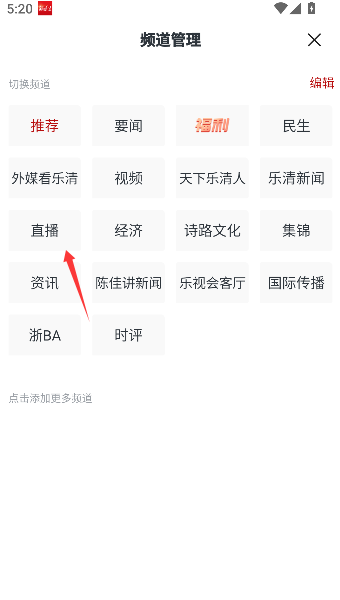 2、进入频道管理页面后,在频道列表中点击“直播频道”选项,即可跳转到直播频道页面,这里汇集了各种实时直播节目供您挑选。