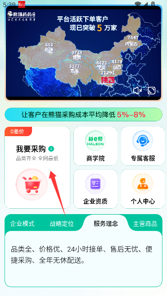 1、进入软件后点击“我要采购”入口,就像走进一家大型虚拟药房,各类药品分门别类清晰呈现。
