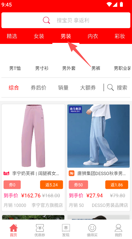 2、优惠展示直接明了,券后价排序功能突出商品优惠力度,让用户快速找到高性价比商品。