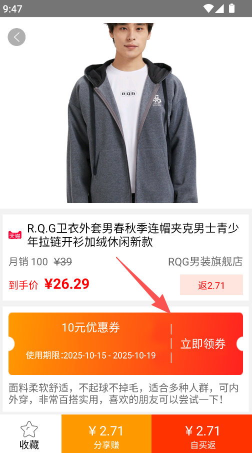 3、领券返利功能,商品详情页可领取优惠券,购物后还能享受返利,实现购物省钱。