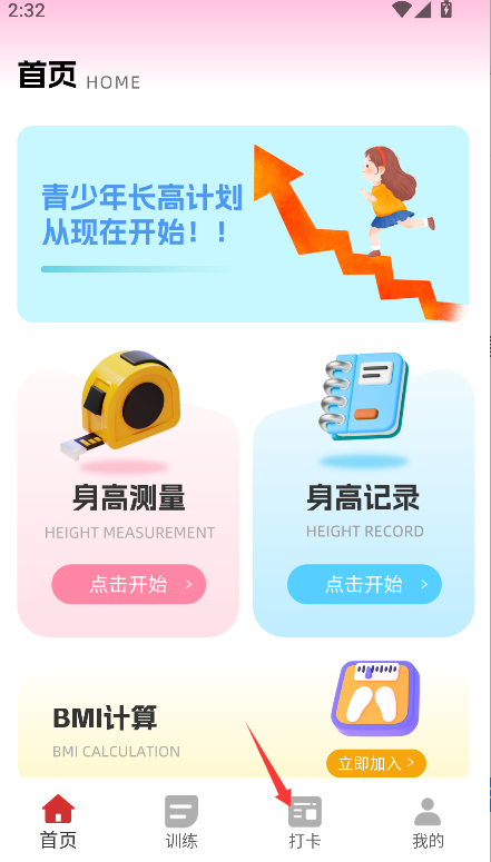1、在主界面底部的导航栏中找到并点击功能明确的“打卡”按钮,进入打卡中心。
