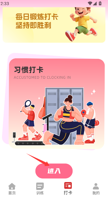 2、在此界面中定位到“习惯打卡”功能板块,并点击该板块下方的“进入”按钮以继续下一步。
