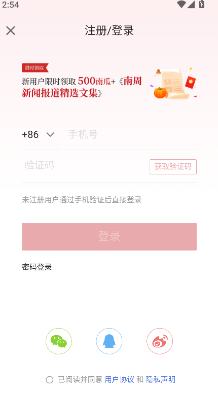 3、首先输入完整的手机号码和验证码,最后点击“登录”按钮完成身份验证与账户注册流程。