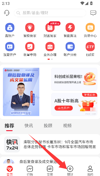 1、启动应用后,在主界面下方导航栏找到并点击显眼的“理财”入口,即可进入理财服务主区域。