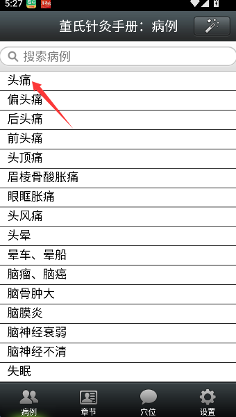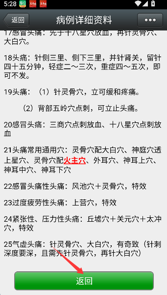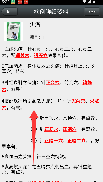 2、轻点返回键仿佛坐上知识时光机,转眼就能探访另一种病症的针灸治疗方案宝库。