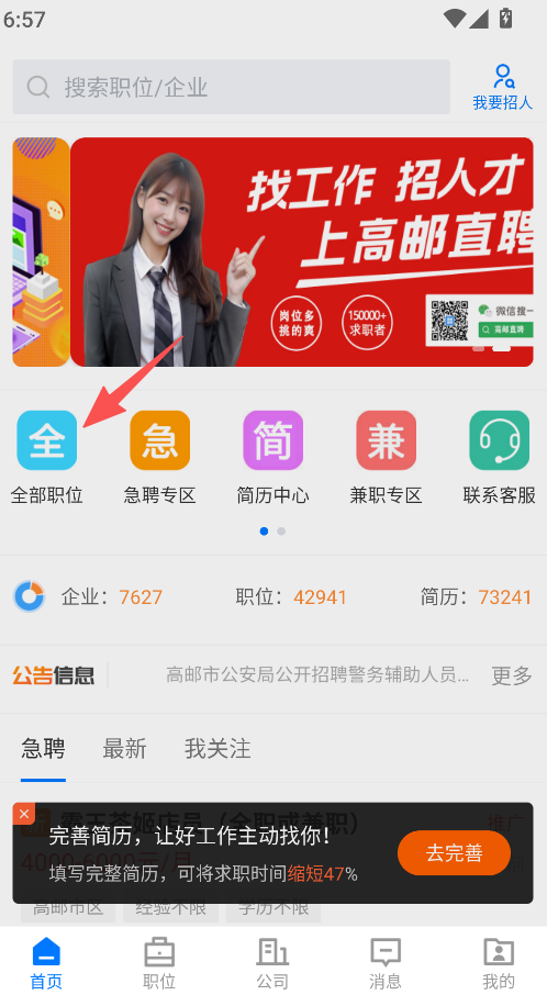 2、覆盖全职急聘兼职等多种岗位类型,涵盖多行业领域,满足不同就业场景需求,岗位资源丰富多元。