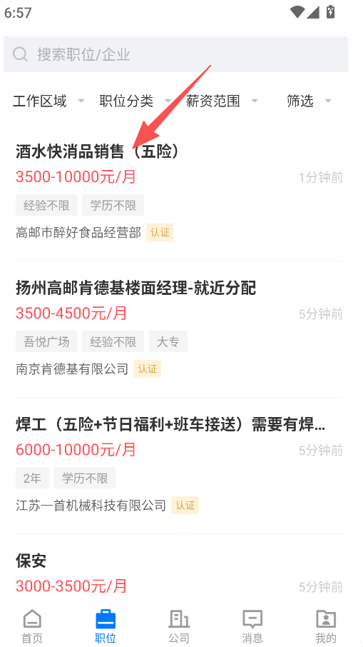 2、返回首页,设置期望薪资地点并搜索合适岗位。