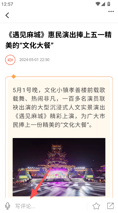 3、打开资讯详情,可在写评论处发表观点参与互动。