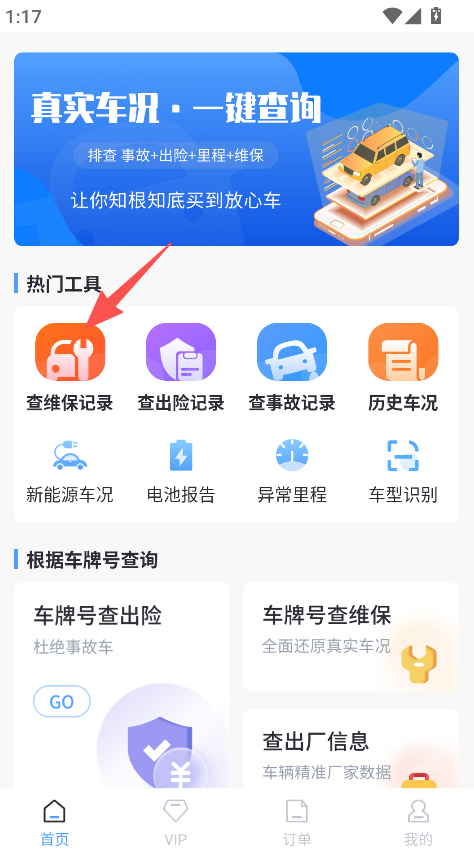3、查询方式多样,有热门工具入口,也支持车牌号、VIN码等多种查询途径。