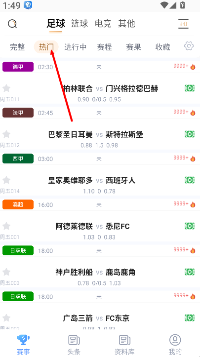 1、进入《光速体育》软件首页后,可浏览当前热门赛事信息,了解最新赛程安排与实时比分动态。