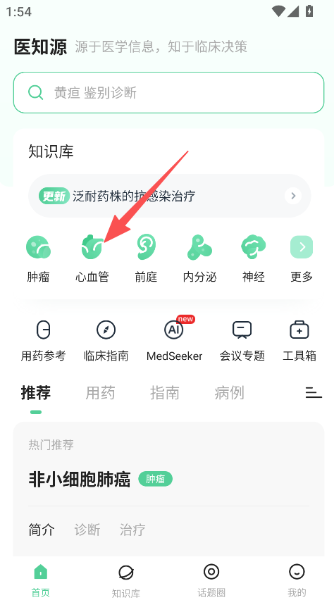 1、打开医知源首页,点击知识库中的心血管板块。