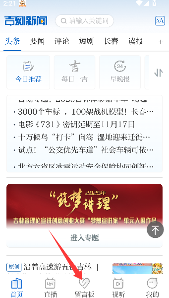 1、在软件首页底部导航栏找到并点击“留言板”入口,页面将跳转至留言板主界面。