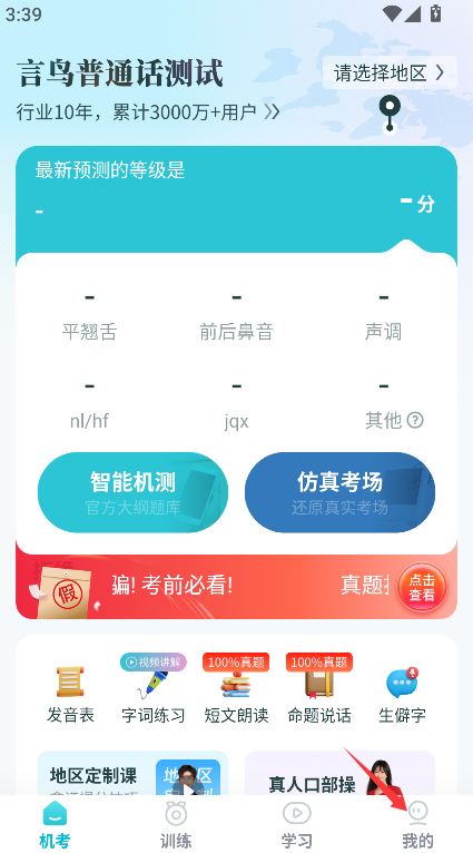 普通话测试app是一款用于普通话水平评估与学习的工具。该工具主要功能包括模拟测试、考试报名、成绩查询以及学习辅导。使用者可进行全真模拟考试,练习拼音、朗读短文和命题说话,并参与直播课程学习。