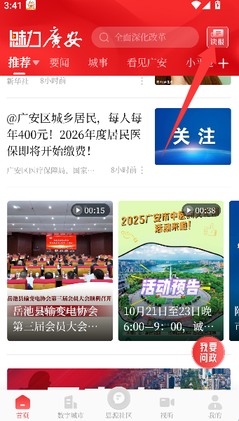 1、在软件首页醒目位置找到并点击“读报”功能入口,即可进入数字报纸阅览界面。