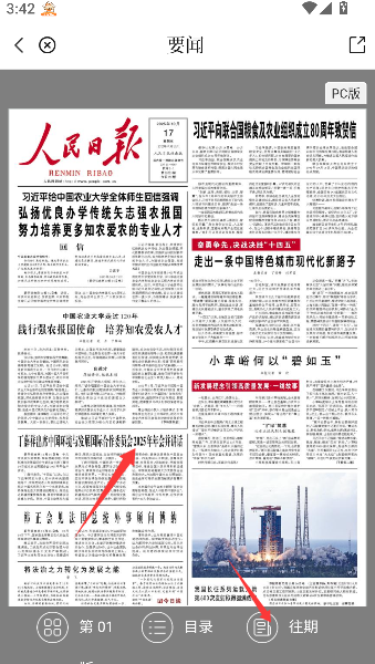 3、进入后可左右滑动屏幕翻阅报纸版面,还支持通过日期选择器查找和阅读过往期刊内容。