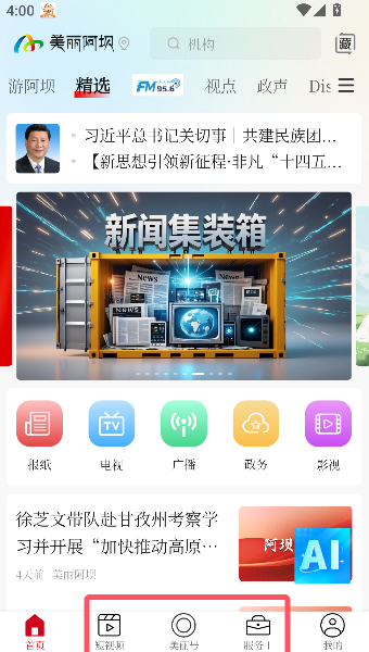 3、应用底部设有“短视频”和“服务”两个常驻功能板块,便于随时访问常用的休闲与实用工具内容。