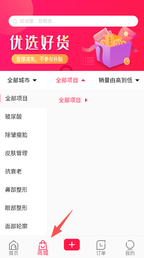 2、设有优选好货板块,优惠方式为直接减免,不参与补贴,提供高性价比医美商品。