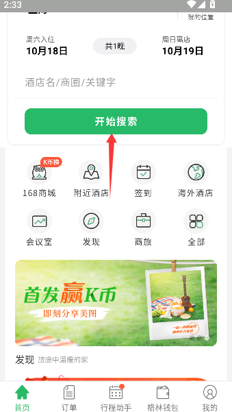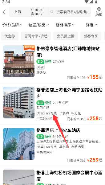 1、通过首页设置目的地、入住日期等关键信息后点击开始搜索,即可跳转至符合条件的酒店列表页面。