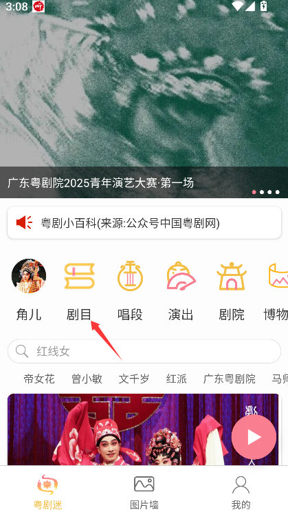 1、在主界面找到并点击“剧目”导航入口,页面将跳转至经典剧目列表页。