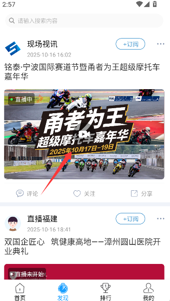 2、在发现页面浏览推荐的直播列表,点击目标直播间的封面或标题即可进入该直播的播放页面。