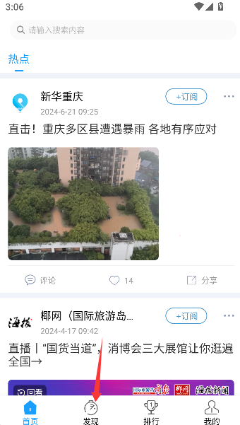 1、在软件首页底部导航栏找到并点击“发现”按钮,页面将跳转至内容聚合的发现板块。