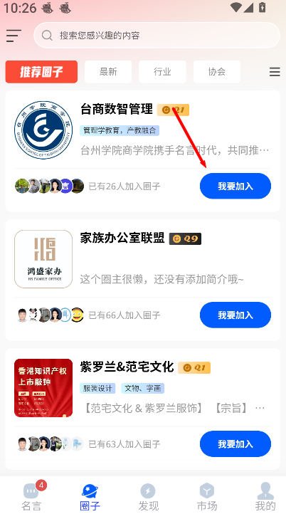2、在应用内可加入推荐或感兴趣的圈子,参与思想交流与语录讨论,发现更多与个人兴趣契合的名言内容与观点。