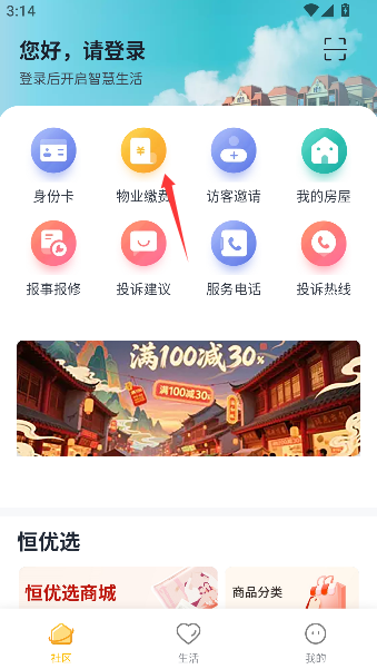 1、打开星络智慧社区软件,在首页或服务页面中找到并点击“物业缴费”功能图标,进入费用查询与支付界面。