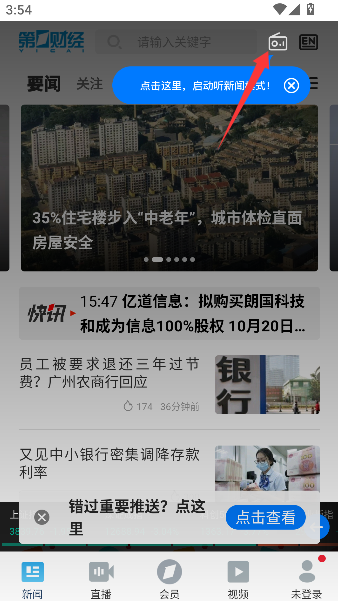 1、在应用首页或文章列表页找到并点击“听新闻”按钮,即可进入音频新闻模式,浏览可收听的新闻内容。