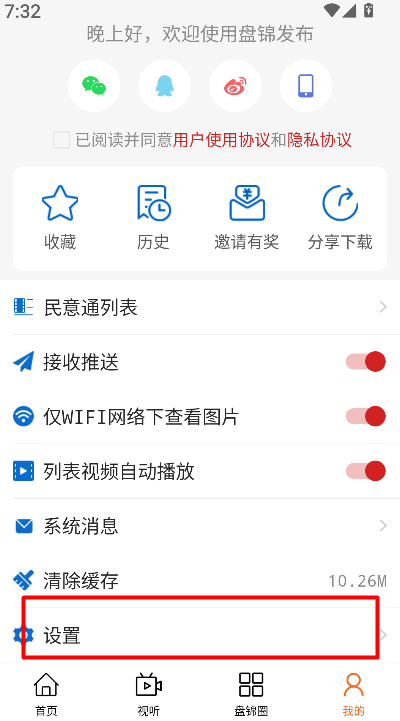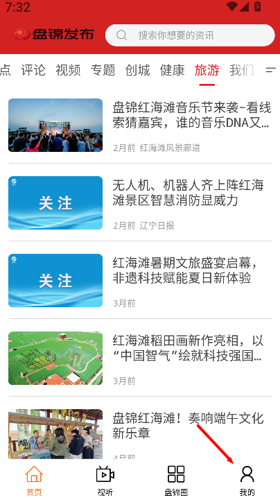 1、打开《盘锦发布》APP进入首页,点击底部导航栏中的“我的”选项,进入个人中心界面,可查看账户信息与基础功能入口。