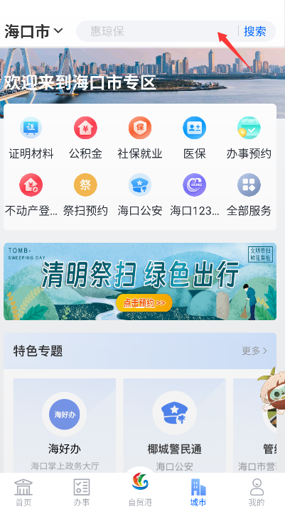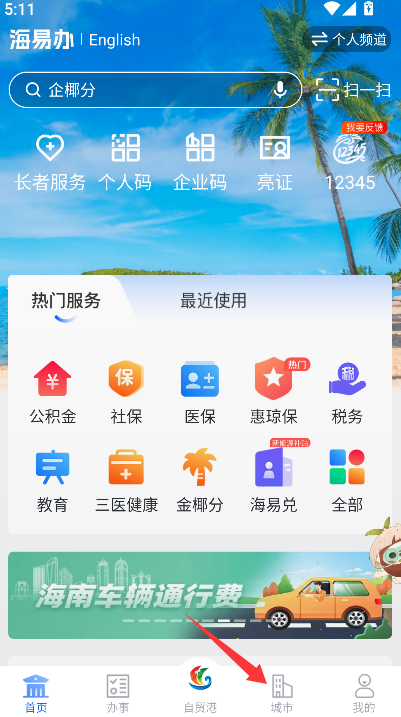 1、打开应用进入主界面后,点击底部导航栏的“城市服务”或类似功能入口。