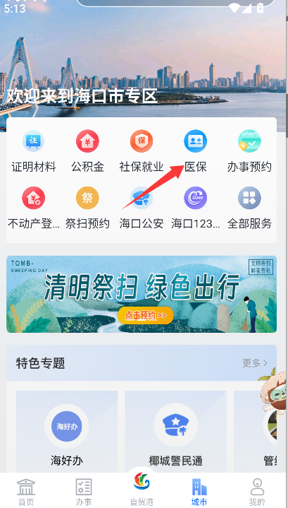 3、找到并点击“医保”服务图标,即可进入相关页面查询信息。