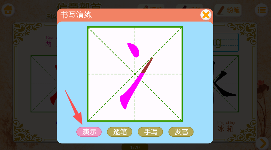 1、书写演示细致入微,逐笔展示笔画走向,同步发音讲解,儿童可直观掌握书写要点,学习效率高。