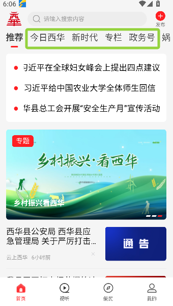 1、新闻资讯浏览,按栏目分类呈现本地图文、视频新闻,支持重要活动直播与回看。