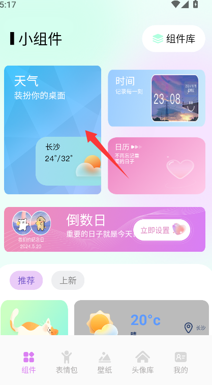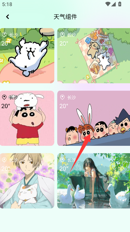 1、找到并点击天气组件入口,系统将跳转至一个专门展示各种天气组件的选择页面。