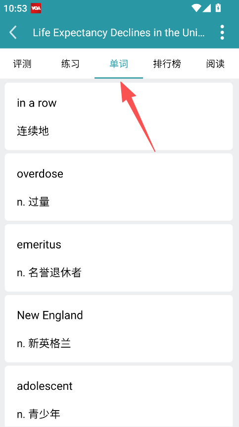 2、单词模块紧扣新闻内容,学习词汇与文章语境结合,记忆更牢固,词汇积累效率高。
