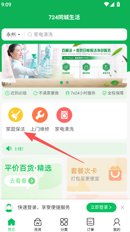 724同城生活怎么预订保洁服务