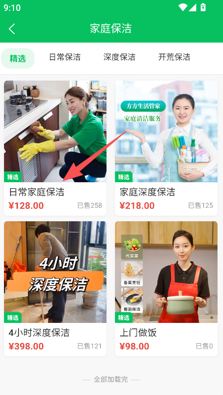 2、选择具体服务项(如日常家庭保洁)。