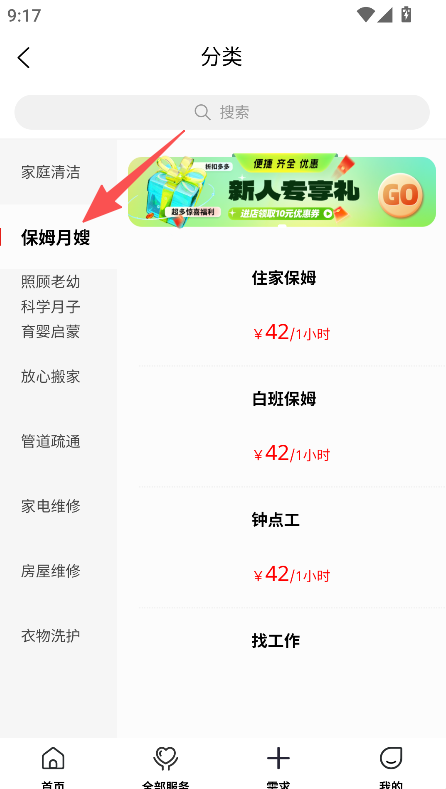 1、进入首页,选择服务分类(如保姆月嫂)。